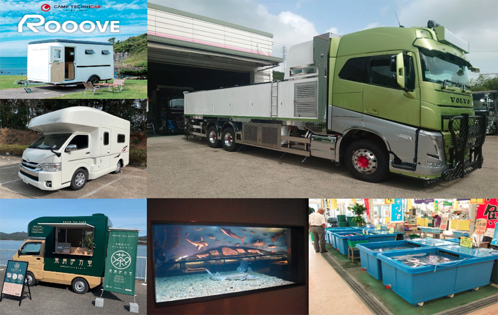 | ◎事業内容 | FRP事業部:活魚輸送車・水槽・FRP製品等 キャンピングカー事業 |